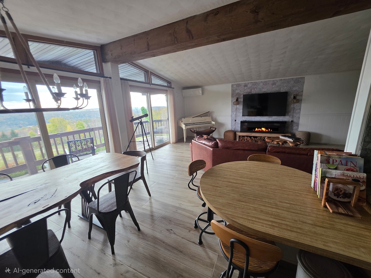¡Bienvenido a The Watermelon Chateau, nuestra linda y acogedora casa de campo en el hermoso noreste de Pensilvania! Ven a disfrutar de todas las actividades que la región ofrece durante todo el año. A los esquiadores les encantará la proximidad a Elk Mountain. También puedes disfrutar de piragüismo, ciclismo, senderismo, golf y mucho más durante los meses más cálidos. Es difícil superar un café temprano por la mañana o una copa de vino al atardecer en la terraza con vistas al agua, y la chimenea es ideal para asar nubes de azúcar bajo los cielos nocturnos cristalinos.