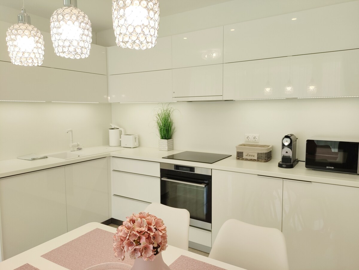 El spa de cinco estrellas Residence Carbona Lila Apartment* * ** * es una pequeña joyería encantadora y elegante en la planta baja del edificio de apartamentos Spa Residence Carbona. Ideal para dos personas. La cocina está totalmente equipada, baño moderno para todas las necesidades y una cama doble grande con un colchón cómodo. El apartamento de 30 m2 tiene su propia terraza privada. Es un pequeño jardín secreto cubierto de verde, con muebles de exterior y un velero para tu comodidad.