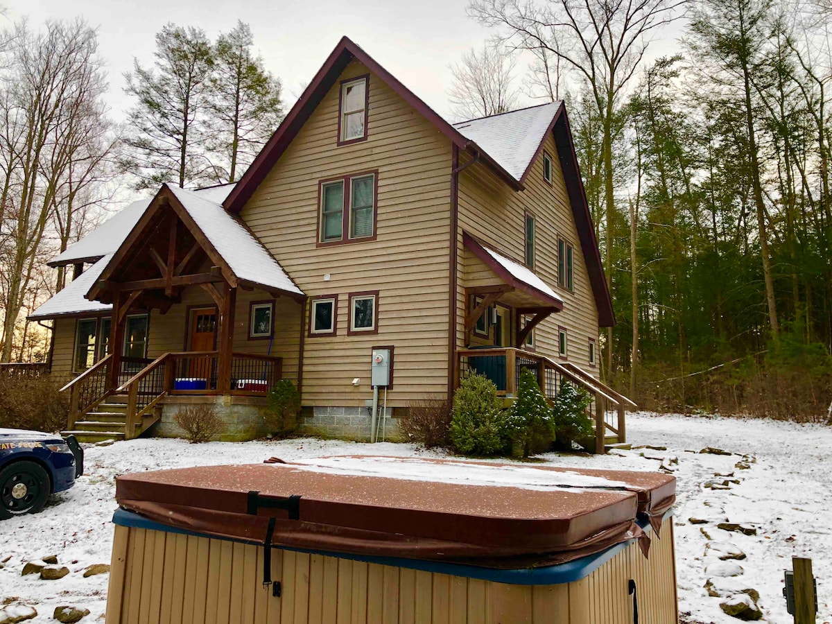 Hermosa cabaña de 2 pisos única en su tipo ubicada en un hábitat privado de vida silvestre de 83 acres. Descubre la naturaleza virgen mientras recorres kilómetros de rutas de senderismo privadas sin salir de la propiedad. Por la noche, maravíllate con el brillo del cielo estrellado desde el jacuzzi burbujeante o reúnete alrededor de la hoguera crepitante para compartir historias. Hay un huerto de frutas jóvenes enfrente, sírvete. Nuestro objetivo es proporcionar una experiencia de 5 estrellas. Convenientemente ubicado entre el icónico puente New River Gorge y el lago Summersville.