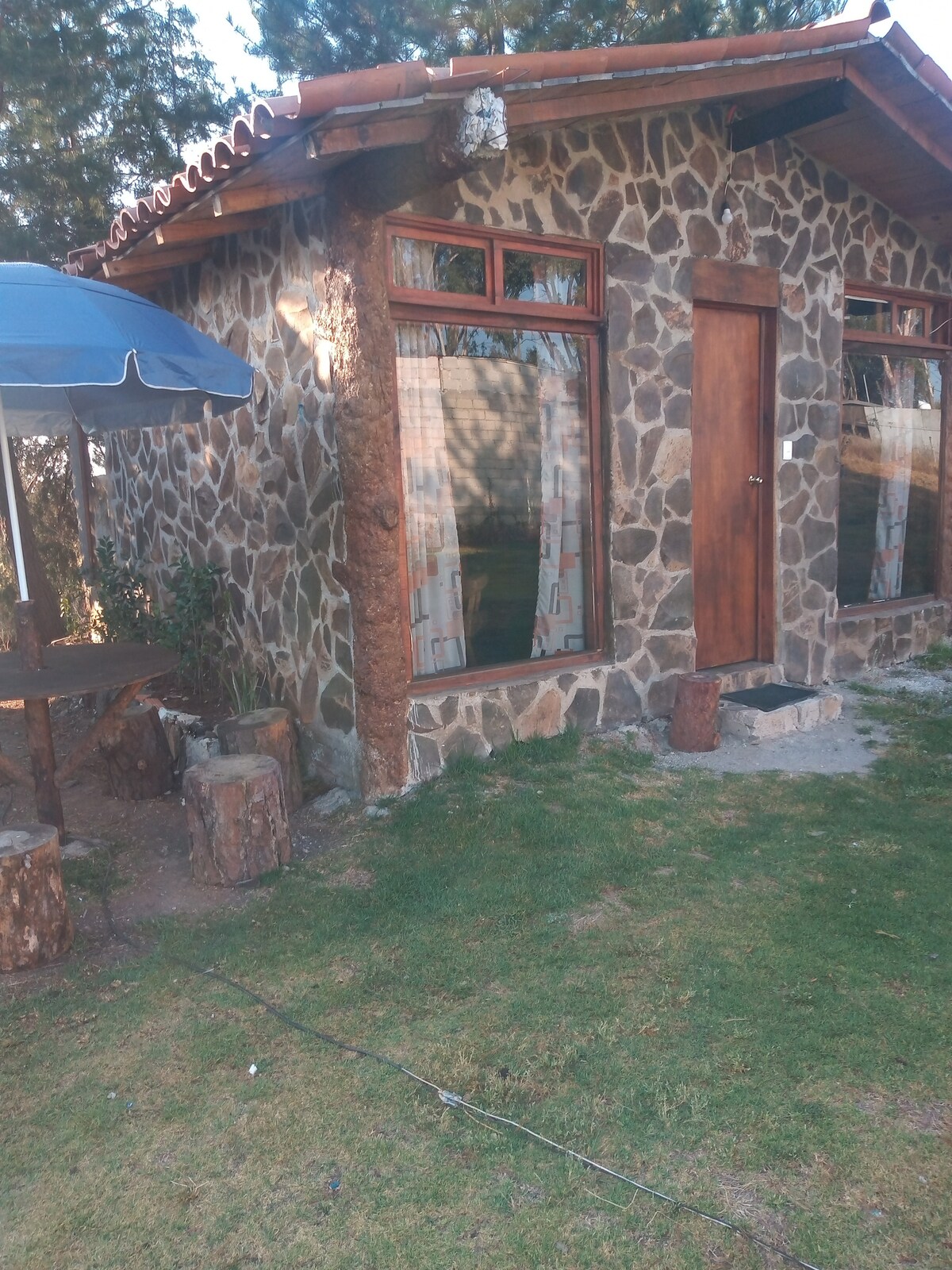Cuenta con dos cabañas tipo campestre acabadas rústicos esta en dos plantas alta dos escaleras , con baño dentro. una cocina rústica campestre con lo necesario cerrada y al jardín y dos baños afuera compartidos, Áreas de jardin y juegos. cabe mencionar que estos espacios se comparten con ambas cabañas como juegos areas verdes y hay y los baños exteriores.rusticos. los mas hermoso es un lugar lleno de naturaleza