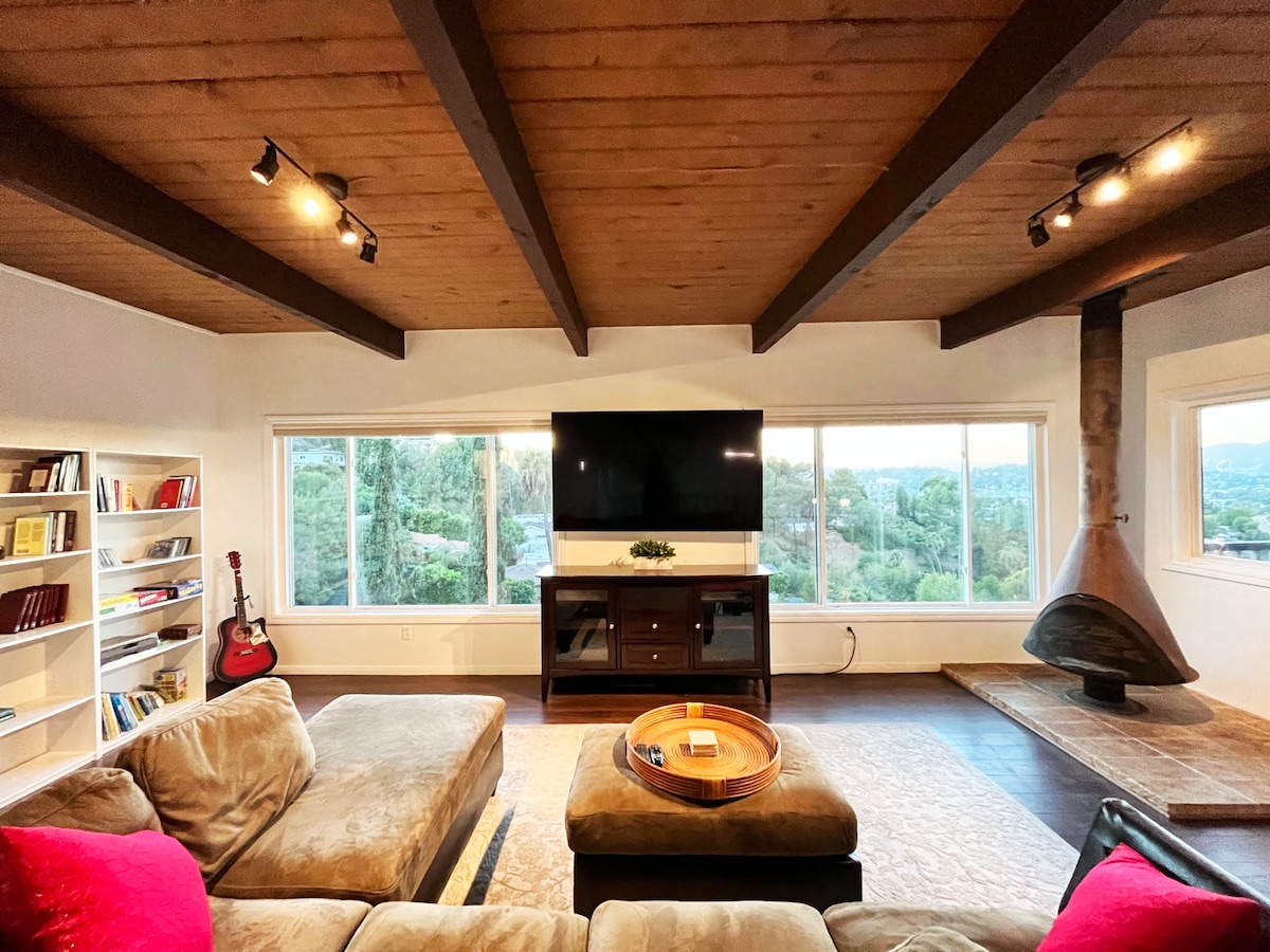 Ubicado en la cima del monte Washington con vistas panorámicas al sur de California. A minutos del centro de Los Ángeles, el estadio de los Dodgers, Highland Park, Griffith Park y Pasadena. La casa se encuentra en un lote doble con mucha privacidad y espacio al aire libre. Despiértate con el canto de los pájaros y prepara un capuchino para beber en nuestras cubiertas de secuoya. Recuéstate y disfruta de la brisa mientras te relajas en una hamaca suspendida entre dos enormes pinos. Tendremos todo lo que necesitas para relajarte y disfrutar de Los Ángeles, desde esterillas de yoga hasta bicicletas. HSR22-000099