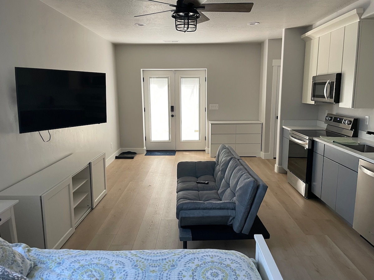 Este acogedor apartamento de un dormitorio en el sótano es el lugar perfecto para alojarte mientras exploras la belleza del norte de Utah. Ubicado a pocos minutos de rutas de senderismo, estaciones de esquí, el aeropuerto SLC, Park City y la Universidad Brigham Young. El apartamento está totalmente equipado con cocina, bañera de hidromasaje, lavadora/secadora, entrada y acceso privados, wifi gratuito y TV de pantalla plana. Duerme cómodamente en una acogedora cama tamaño king. Tanto si estás aquí por trabajo como si lo haces por placer, ¡este es el alojamiento perfecto para tu aventura en Utah!