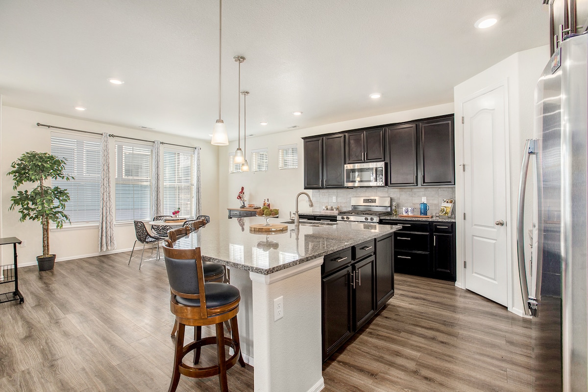 ¡Hermosa, limpia y lujosa casa adosada a media manzana de Littleton Main St! ¡Muebles de alta gama diseñados profesionalmente, ropa de cama, decoración y mucho más! Preciosas vistas a la montaña desde la terraza privada de la azotea y una increíble ubicación céntrica a 2 manzanas del tren ligero para acceder al centro de Denver. ¡2 plazas de aparcamiento personales fuera de la calle en el garaje adjunto y se admiten mascotas! ¡Ven a disfrutar de todo lo que Littleton y Denver tienen para ofrecer! ¡Se admiten mascotas con fácil acceso a parques y césped justo enfrente!