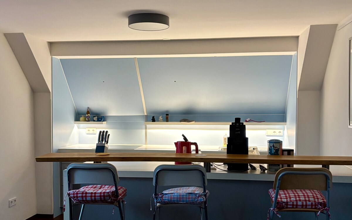 Cocina ★totalmente equipada con isla Proyector de cine★ en casa + Netflix y compañía Internet ★súper rápido ★Estacionamiento privado, ★Supermercado, cafetería, restaurante, parque infantil a pocos pasos ★Llegada autónoma: rápida y fácil ★Recomendaciones para actividades emocionantes en la zona y en toda Baviera Camas XXL★ supercómodas Departamento de ★nueva construcción ★Recomendaciones para restaurantes ★Cafetera y cápsulas ★Selección de tés ★Estufa, horno, tostadora, hervidor de agua ★Nevera, compartimento congelador ★Lavaplatos