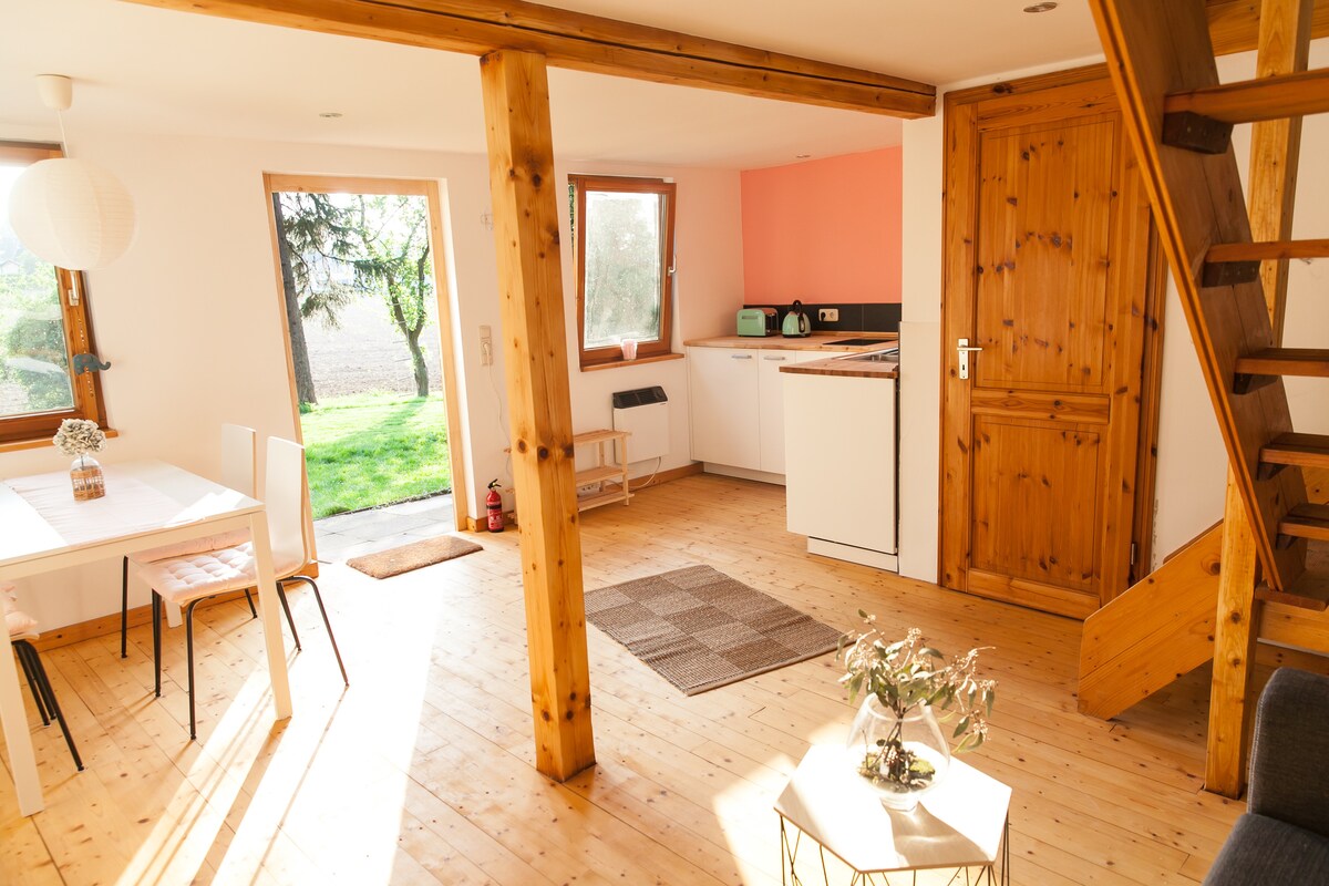 Relájate con (o sin) familia en nuestra pequeña granja. Aquí encontrarás la paz perfecta y la naturaleza en estado puro. ¿Quieres saber cómo ladra el zorro o cómo llama el ciervo? Probablemente lo descubrirás aquí. Sin embargo, la «civilización» está cerca y hay grandes destinos turísticos cerca. El apartamento está situado en una antigua granja y se está «mejorando» continuamente. El equipamiento es práctico y no está sobrecargado.
