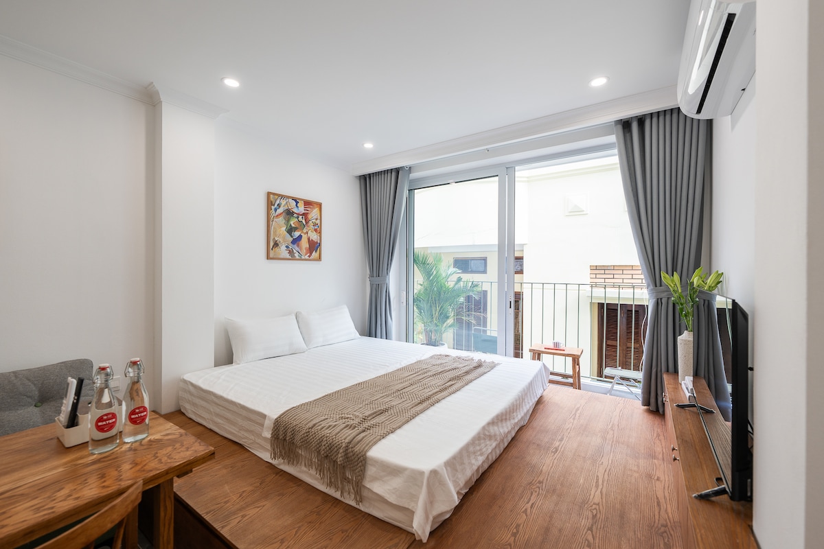 Located in the heart of Hanoi, this exceptionally spacious 175m² duplex sky villa spans two levels and is just steps away from the famous Train Street, offering a rare urban experience with a large balcony and open street views.