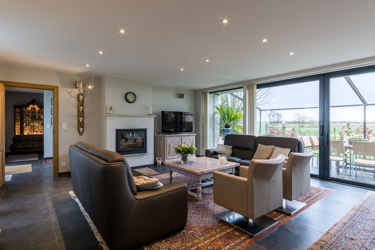 Luxe natuurhuis met wellness bij vijver