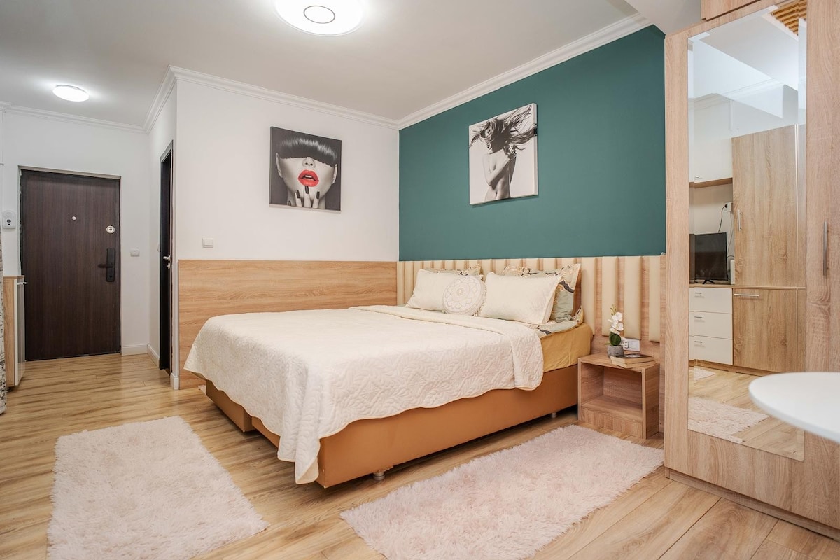 Descoperă o oază de confort și stil în acest apartament primitor, ideal pentru sejururi relaxante în Iași. Cu un design modern, accente elegante și o atmosferă caldă, acest spațiu îți oferă tot ce ai nevoie pentru o experiență linistita. Dormitorul spațios, cu pat matrimonial confortabil, creează un ambient rafinat, iar livingul cozy este perfect pentru momente de relaxare. Situat într-o zonă excelentă, aproape de Spitalele SF Marie si Nicolae Oblu, sau a altor puncte de interes din zona.