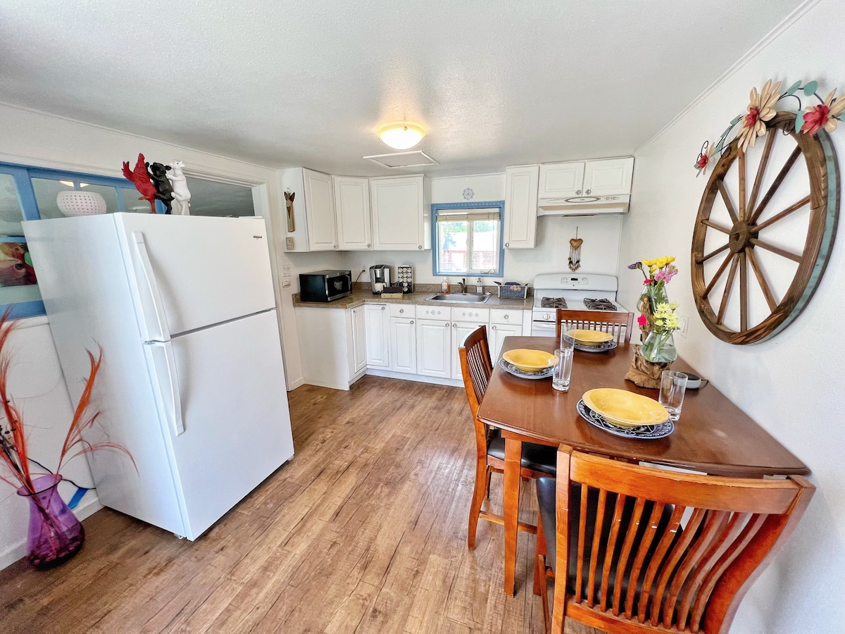 Granja tranquila y acogedora con 3 dormitorios y 2 baños, además de una amplia sala de estar y una cocina totalmente equipada. Airbnb ubicado en una granja familiar en funcionamiento: despierta con el aire fresco del campo y saluda a nuestras amigables alpacas, conejitos, vacas, gatitos, gansos y mucho más. El zoológico interactivo Back-to-Eden Ranch es gratuito para los huéspedes de Airbnb (valorado en $100 para una familia de 4 personas). (Consulte los detalles en el sitio web de Back-to-Eden Ranch). De 8 a 10 personas como máximo. Cualquier grupo más grande necesitará un acuerdo previo con el anfitrión.