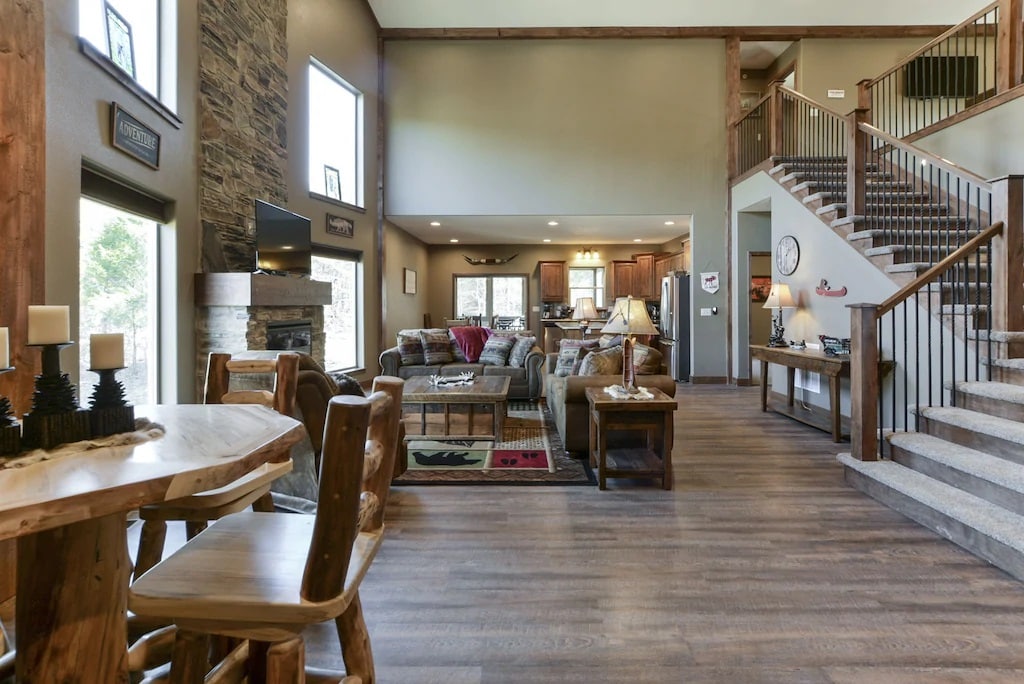 ¡Estamos ubicados en Branson Canyon, un barrio tranquilo y bien cuidado a solo un cuarto de milla de Table Rock Lake! Esta hermosa y rústica casa, con pisos de nogal raspados a mano y techos de pino nudoso, ofrece todas las comodidades del hogar y más. Estamos cerca de todo lo que Branson tiene para ofrecer, pero lo suficientemente lejos como para relajarse y descansar con familiares y amigos. ¡Toda la casa ha sido decorada con una decoración única de cabaña, ropa de cama lujosa y todos los detalles para hacer de esta una escapada de lujo!