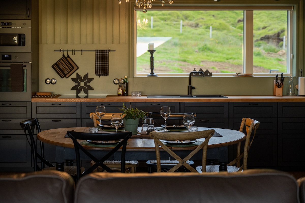 La nueva cabaña renovada (2021) se encuentra cerca del océano con preciosas vistas al mar, a solo unas millas del histórico glaciar Snæfellsjokull. Buena comodidad en la casa. Está equipada con una gran chimenea y jacuzzi al aire libre en la terraza de 100 metros cuadrados. Variedad de excursiones a pie al aire libre para experimentar la naturaleza. como lava, glaciares, montañas, cuevas, cascadas y antiguos pueblos de pescadores. Lugar histórico con una geología increíble, así como una rica avifauna. La cultura de esta región hace que la experiencia valga la pena.