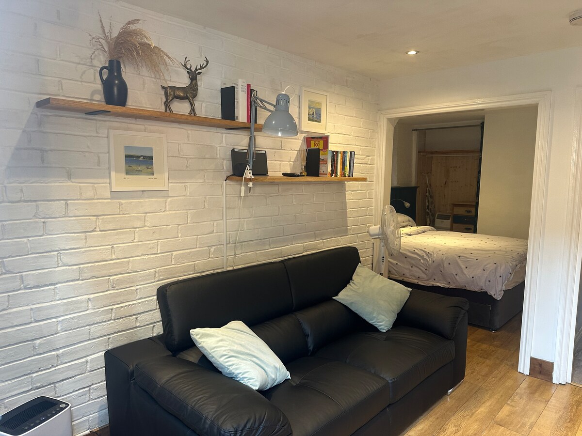 Anexo recientemente reformado con aparcamiento fuera de la calle y entrada privada para dos huéspedes. El anexo tiene una cama tamaño king, una sala de estar con TV inteligente HD de 49 pulgadas, un baño con ducha/WC separado y una cocina americana bien equipada por si quieres cocinar.