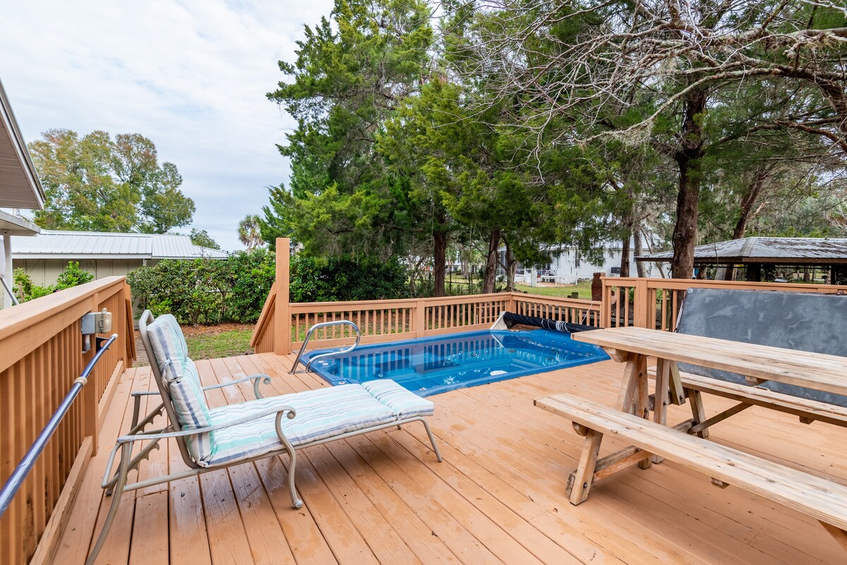 Bienvenido a tu hermoso, aislado y soleado oasis. Pasa tus días descansando en la PISCINA CLIMATIZADA PRIVADA/SPA en tu lanai protegido, y las noches observando las estrellas. Relájate con una bebida mientras observas aves o disfruta de un baño de chorro a la luz de las velas en el baño principal. Cocina totalmente equipada para el chef familiar. Parrilla exterior. ¡Cerca de todo! ¡SIRENAS RECOGIENDO VIEIRAS, NADANDO CON MANATÍES en ríos cristalinos, playas del golfo y mucho más! Los bloqueos de pasador/alarmas en la parte superior de todas las puertas exteriores mantienen a los niños seguros. CALEFACCIÓN DE PISCINA INCLUIDA.