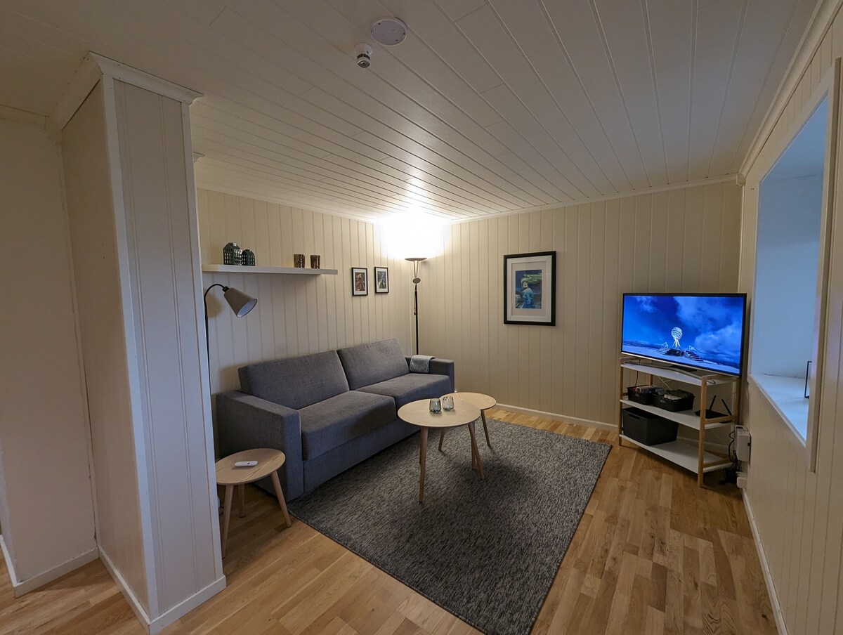 Gran apartamento en alquiler en el idílico y pintoresco Kolvik. Aquí puedes experimentar el sol de media noche en verano y las auroras boreales en invierno. Leiligheta tiene todo lo necesario para preparar una comida encantadora y dormir bien. Hay espacio para dormir para 3 personas, ya que está equipado con una cama doble y un colchón en el piso.