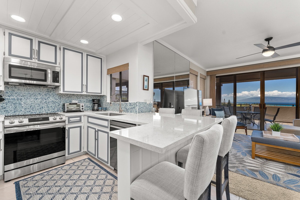 Propiedad y administración local. Apartamento tipo estudio con la mejor ubicación directa frente a la playa, vistas panorámicas al mar, atardeceres y observación de ballenas estacional. El propietario no escatimó gastos en la renovación de esta unidad, por lo que es una de las unidades más bonitas de todo el Mahana. Despiértate con la brisa tropical fresca y los sonidos de la costa a solo 50 pies de distancia. Ubicado en la playa de North Kaanapali. Disfruta de unas vistas impresionantes y del cálido sol de Maui en el interior mientras el aire acondicionado central te mantiene fresco y cómodo a cualquier hora del día.