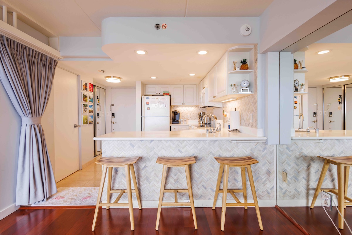 Waikiki Banyan will be renovating the recreation deck from April 7, 2025 through May18, 2026. The renovation work is expected to be completed in the end of April . The entire recreation deck will be inaccessible, including the pool, hot tubs, and barbecue grills. 1 Parking, FREE High-Speed WiFi internet Enjoy a fully-equipped kitchen and comfortable seating in the living room. Watch the surfers from the lanai in this high floor standard ocean view suite!