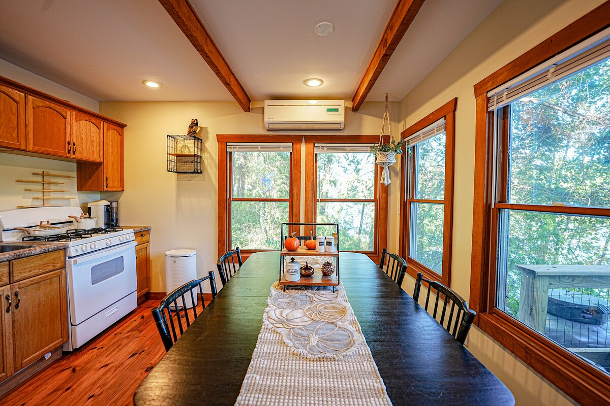 ¡Disfruta de las increíbles vistas al lago desde esta casa absolutamente preciosa y moderna junto al lago! Destino perfecto para unas minivacaciones, un retiro en pareja o una escapada en familia. «La Vida Lago» es una casa de campo junto al lago completamente amueblada y unifamiliar con 2 dormitorios, 1,5 baños, terraza, patio, acceso privado al lago y muelle justo enfrente. ¡La propiedad está encaramada desde la carretera y enclavada en la montaña rodeada de árboles! El entorno ideal para conectar con la naturaleza, contigo mismo y con tus seres queridos.