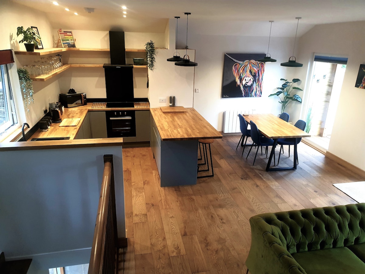 El Ferny Hoolet es un impresionante chalet que abraza la naturaleza y está lleno de carácter. Es un oasis de vida silvestre donde regularmente puedes ver martines pescadores, pájaros carpinteros y escuchar lechuzas de helecho desde tu balcón. Cuando no estés relajándote en el jacuzzi, podrás disfrutar de la tranquilidad del espacio interior, que tiene un ambiente maravilloso y relajante para sentirse bien. Estamos a solo 30 minutos del Distrito de los Lagos y a 2 millas de la M6, que ofrece un gran acceso para explorar el noroeste. Se admiten 2 perros pequeños/medianos que se porten bien.