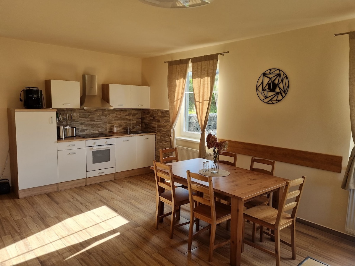 Ven a descansar. El apartamento está situado en el pueblo de Prostřední Staré Buky. Cerca de rutas ciclistas. A poca distancia del embalse Dolce. A 10 minutos en coche de Trutnov, la estación de esquí y el campo de golf de Mladé Buky, a 20 minutos de Jánské Lázně, Černá hora y también de Dvůr Králové. En el pueblo hay un parque infantil con tenis de mesa. Ideal para ciclistas, golfistas y esquiadores.
