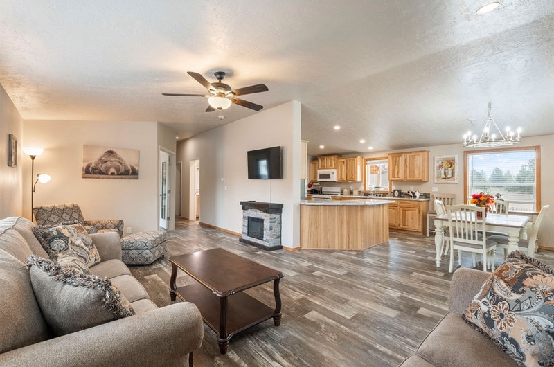¡Llena de servicios y comodidades cuidadosamente seleccionadas, esta nueva casa de 4 dormitorios y 2 baños con patio trasero vallado, patio, jacuzzi y chimenea seguramente te deleitará! Situado en la cima de la pradera rural de Five Mile Prairie, a 15 minutos del centro de la ciudad. El estilo minimalista y despejado será un bienvenido descanso de la agitación de la vida diaria. Siéntate en la acogedora sala de estar y relájate mientras ves una película, o exhala y sumérgete en el jacuzzi. Haz de esta casa el próximo destino de vacaciones de tu familia.