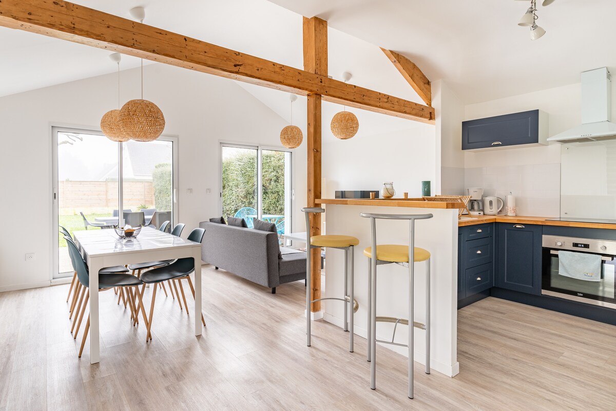 Encantadora casa de campo con jardín, terraza y garaje. Ubicado en una residencia, este alojamiento está cerca del mar. Totalmente equipado y tranquilo, este alquiler es perfecto para una escapada relajante. Una cama tamaño queen y dos literas. También se incluyen una lavadora y una cafetera Nespresso. Se proporcionarán sábanas y toallas. Para saber más, lee la descripción detallada que aparece a continuación. :)