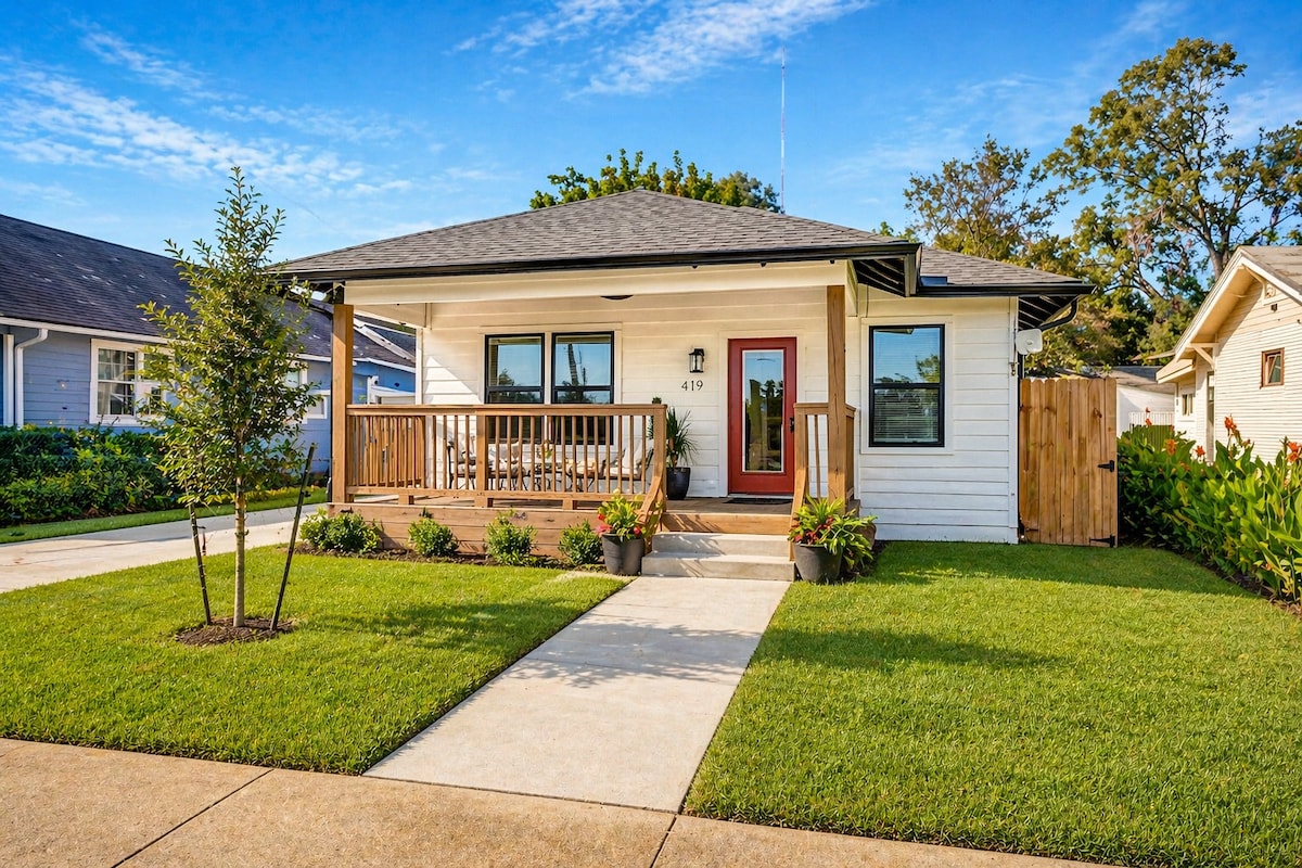 Featured on the 2026 Heights Home Tour - Enchantment awaits along tree-lined streets in this beautifully redesigned 2-story Craftsman guest house. This spacious 1,000 sqft private retreat offers an updated kitchen, 2 bathrooms, and comfortable living for up to 4 guests. Tucked in the heart of Woodland Heights, walk to parks, coffee shops, and local favorite restaurants. Just 2 miles from Downtown and minutes to the Medical Center - an ideal blend of timeless charm, privacy, and convenience.