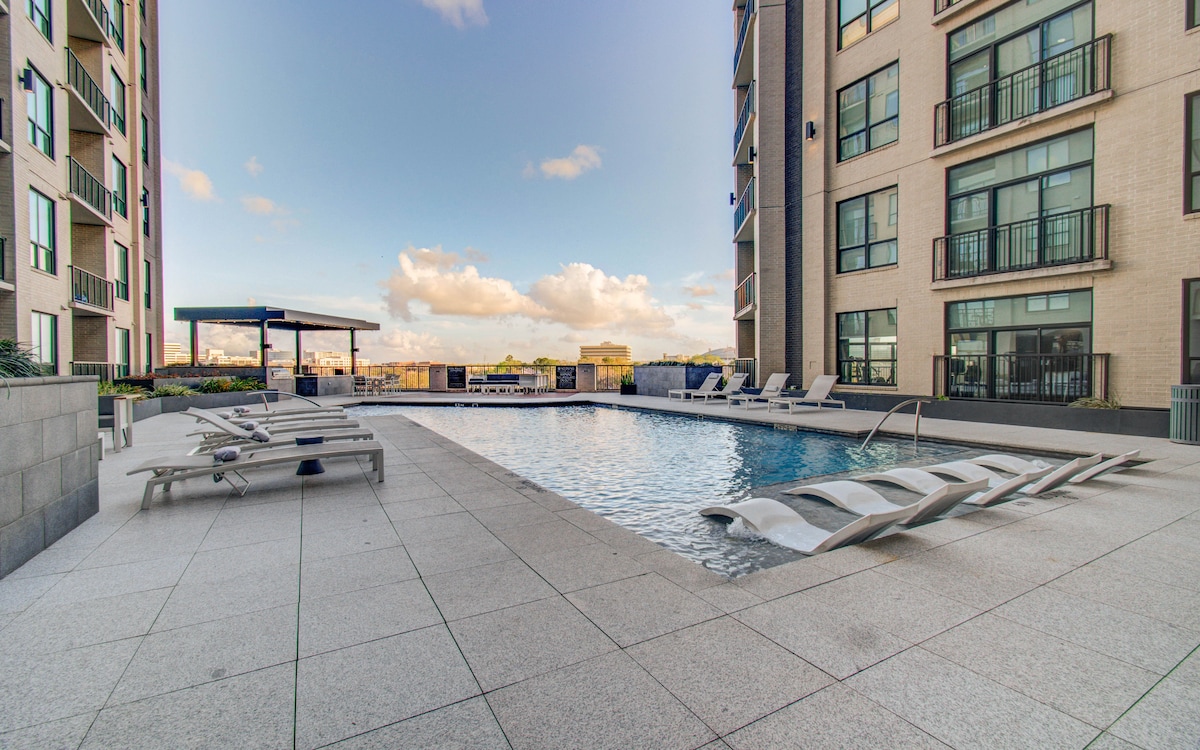 Luxury King 1BD Rooftop, Pool, Gym, & Free Parking
