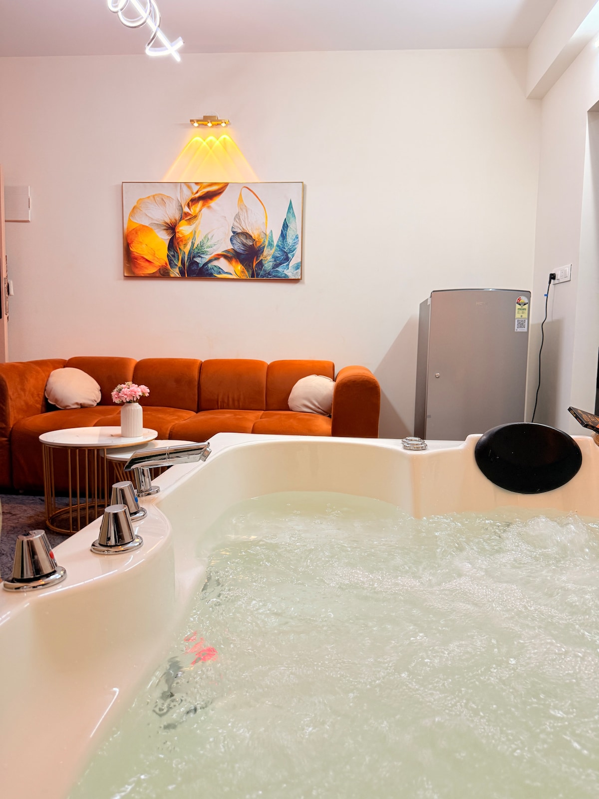 🌿 Vida de lujo con jacuzzi relajante en una ubicación privilegiada de HSR, Kormangala Bienvenido a Cayetana Luxury Homestays: un departamento de 1 habitación cuidadosamente diseñado, de primera calidad, con jacuzzi privado y balcón, ubicado en la tranquila Teachers Colony, HSR Layout, una de las zonas mejor comunicadas de Bangalore. Ideal para parejas, vacaciones en casa, aniversarios y viajeros de negocios, este alojamiento combina el lujo de estilo hotelero con la comodidad y la privacidad de un departamento.