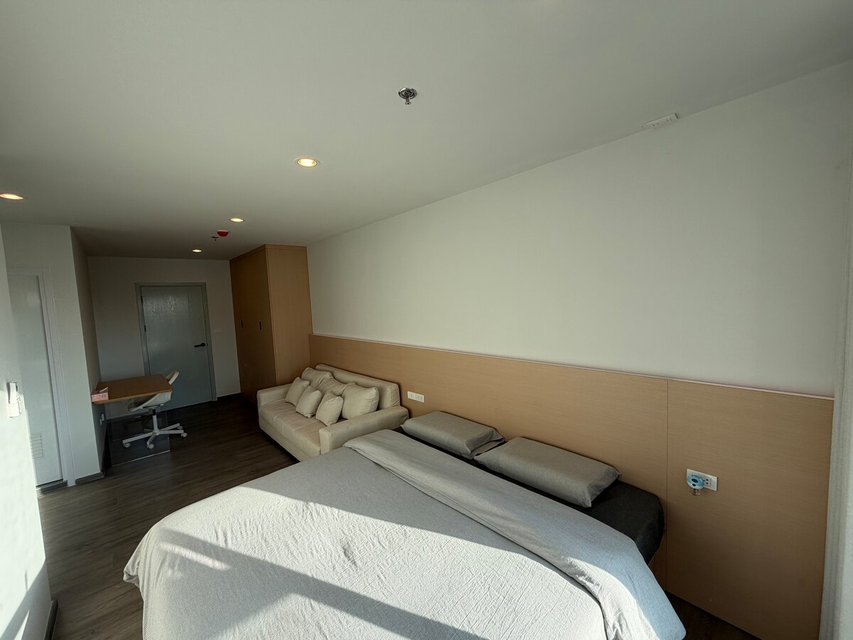 这处房源是曼谷旅行、商务出差、情侣出游的理想之选。位于热门的邦纳(Bangna)核心地段,地处Regent Home Bangna小区内,步行280米即达BTS Bangna站,出行便捷。 • 到素万那普机场:约20分钟车程 • 到四面佛:BTS直达约25分钟 • 到是隆(Silom):BTS转MRT约30分钟 • 上高速到是隆:约15分钟 • 上高速到素坤逸:约12分钟 • 到暹罗古城七十二府:约30分钟 • 到周边大型医院:约10分钟 小区为全新现代社区,配有24小时安保、门禁系统,还有泳池、健身房、空中花园及休闲区,安全舒适。 周边配套成熟,步行可达Mega Bangna、IKEA等大型商场,斜对面即是在建的东南亚最大商场The Bangkok Mall。紧邻BITEC会展中心,车程仅5分钟,是商务参展优选;周边多所国际学校,车程10分钟左右,适合陪读家庭。餐饮、超市、便利店密集,生活便利度极高。 房源空间宽敞舒适,无论是家庭旅行、朋友小聚、商务出差还是情侣出游,都能轻松满足,让每位住客在曼谷拥有惬意安心的旅居体验。