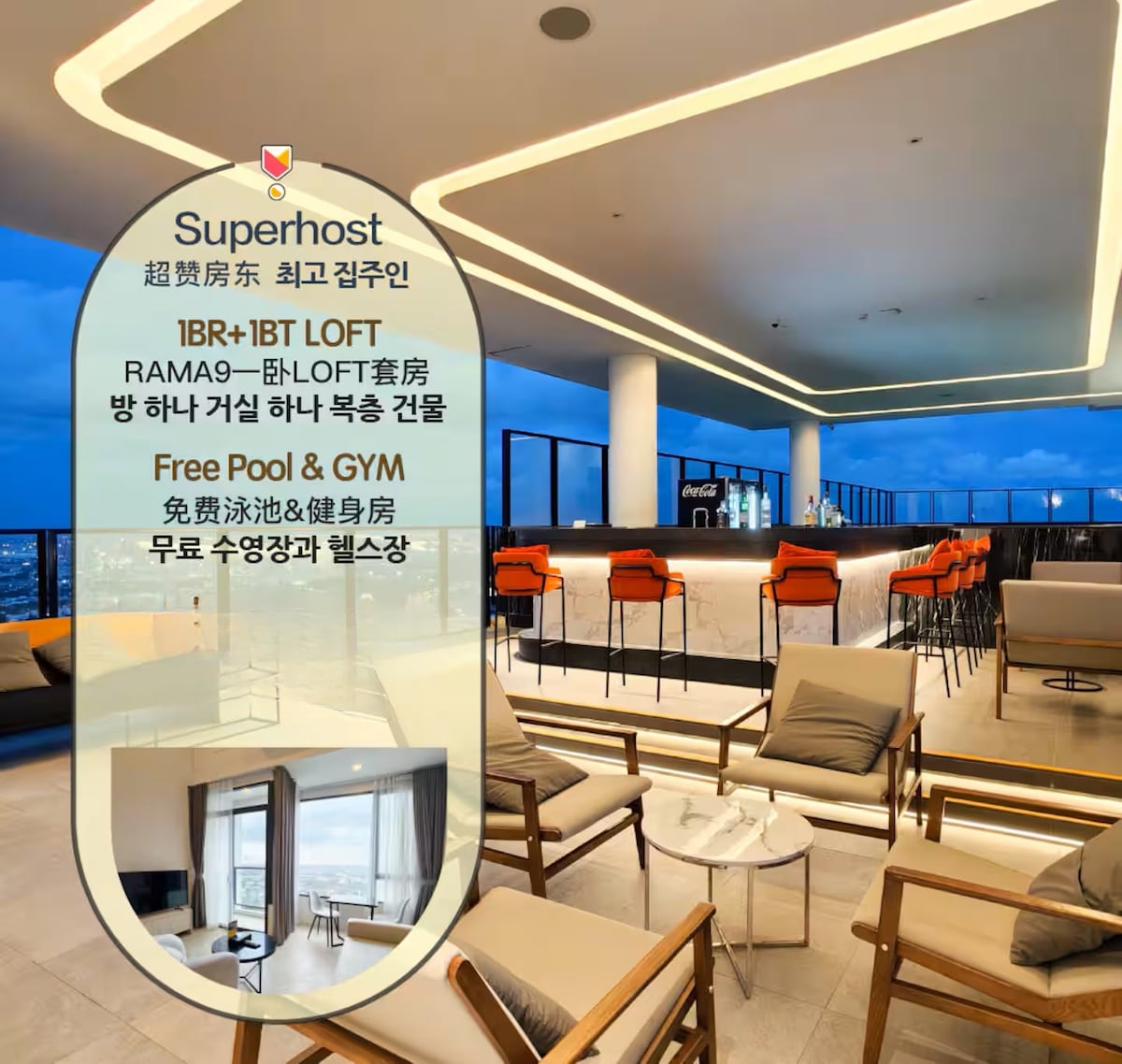 ¡Disfruta de un apartamento de gran altura como ningún otro! ¡Equipado con un increíble gimnasio y piscina infinita en la azotea! ¡Apartamento limpio y brillante con wifi de alta velocidad y varias películas de Netflix gratis! Con tiendas abiertas las 24 horas y puestos de comida que sirven comidas suntuosas hasta la medianoche, nunca pasarás hambre. ¡La estación de tren BTS se encuentra a solo 50 metros de distancia! 欢迎您来¡本公寓提供舒适的房间,房间里设备齐全 厕所,网络,软床, 位于离BTS Udomsuk轻轨站很近, BTS Udom Suk那里有菜市场,街边有卖很多的食物, 就1分钟走路到那儿, 非常地方便.