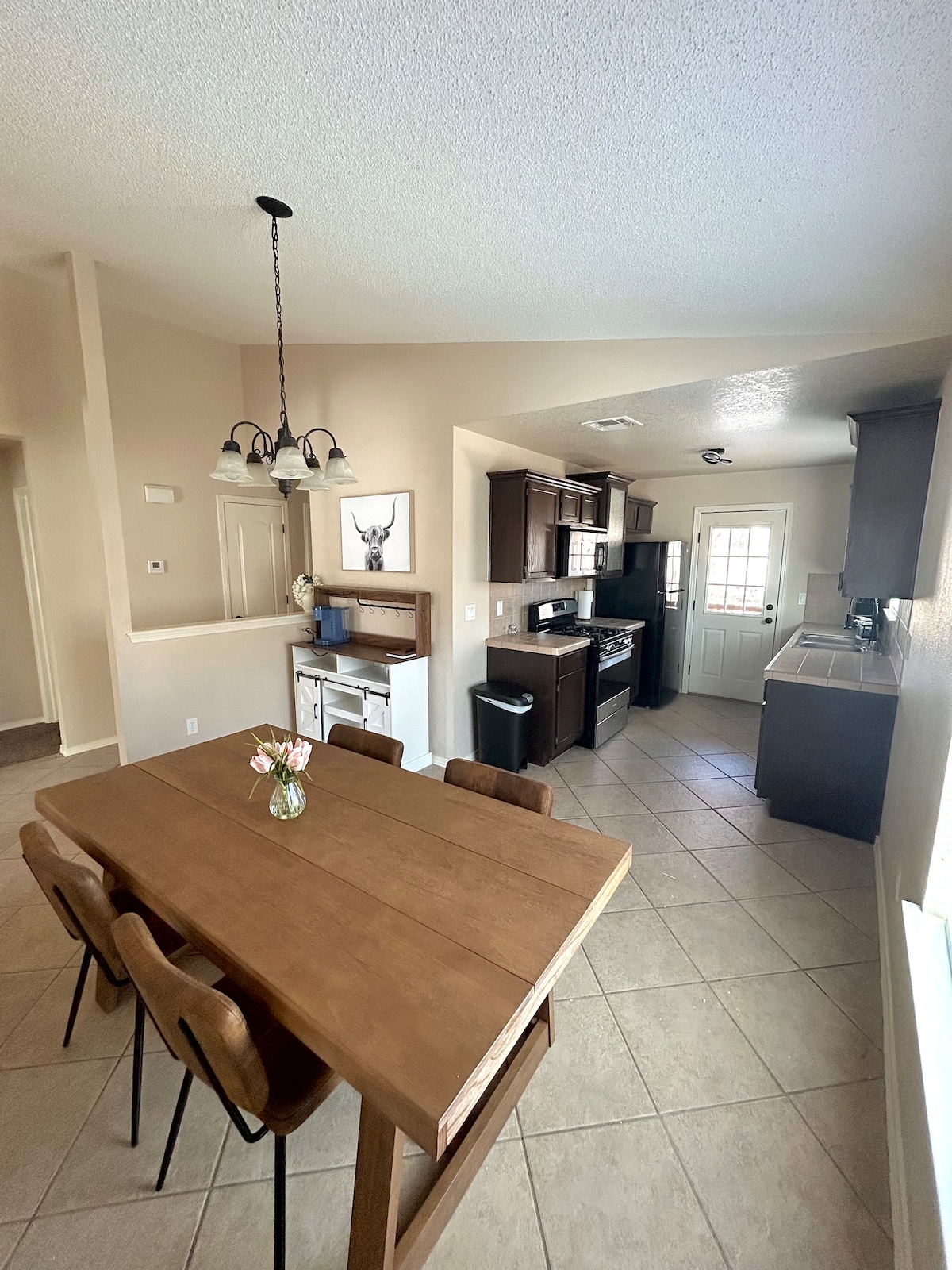 ¡Te damos la bienvenida a tu acogedor retiro en El Paso! Disfruta de una estancia cómoda en esta elegante casa de 3 dormitorios y 2 baños, que ofrece 1113 pies cuadrados de espacio bien diseñado. Perfecto para familias, grupos pequeños o viajeros de negocios, este alojamiento ofrece un ambiente cálido y acogedor. Relájate en la acogedora sala de estar, cocina en la cocina totalmente equipada y relájate en el patio trasero privado. Convenientemente ubicado cerca de tiendas, restaurantes y atracciones locales, tendrás todo lo que necesitas para una estancia inolvidable.