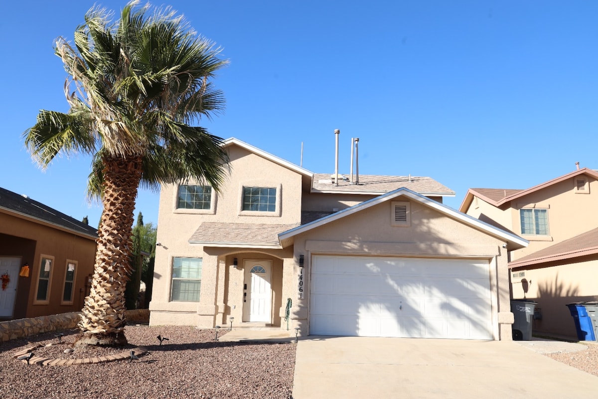 Bienvenido a tu moderno refugio, perfectamente situado a pocos minutos de la interestatal I-10 y del Loop 375 para facilitar el acceso a la ciudad. Esta elegante casa impecablemente limpia ofrece lo último en comodidad y conveniencia, con nuevos restaurantes de moda y tiendas cerca. Además, disfruta de la ventaja de las entregas de Amazon en el mismo día. A poca distancia a pie hay un parque familiar con zona de juegos. Tanto si estás aquí por negocios como para relajarte, encontrarás todo lo que necesitas para una estancia inolvidable.