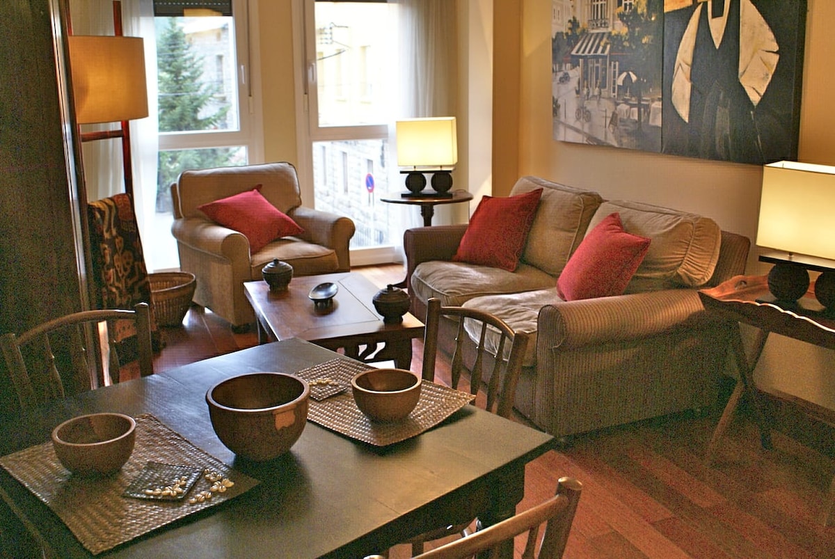 Apartamento ubicado en una posición idónea para realizar cualquier actividad náutica, senderismo, BTT cerca de tiendas, bares. Edificio con ascensor y vídeo-portero. Dispone de calefacción central, AC. En el dormitorio cama queen. En el salón: cama queen, sofá biplaza, TV, WIFI. Cocina: nevera, lavadora, microondas, horno y encimera. El baño de 3 piezas con bañera. Totalmente equipado (sabanas, mantas, toallas, secador del pelo, plancha). Descuento para estancias superiores a 7 noches.