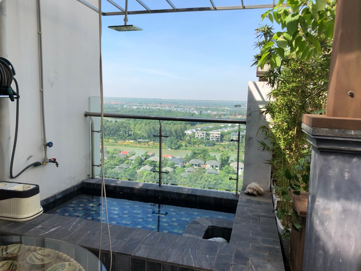 Sol Forest building was designed by the renowned international architecture firm Dewan Architects + Engineers (Dubai), famous for its Vertical Forest concept. The design creates a unique green space with elevated tropical gardens, bringing a harmonious balance between architecture and nature. The apartment is located on the 30th floor, overlooking the Vạn Tuế residential area, with open and refreshing views of the Haven and Vạn Tuế swimming pools. The homestay belongs to Cui Homestay Ecopark.