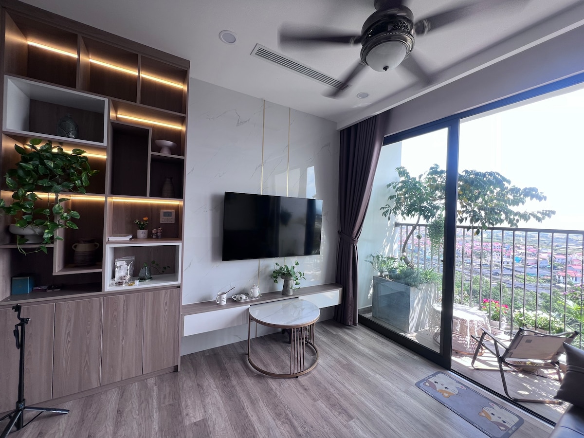 Disfruta de un lujo de 5 estrellas en este elegante estudio en tonos grises, con un baño con paredes de cristal, detalles en piedra natural y acabados de primera calidad. Perfectamente situado en el corazón de Ecopark, a solo 3 minutos del lago de los Cisnes y a 30 minutos del casco antiguo de Hanói, con restaurantes, cafeterías y tiendas justo a la vuelta de la esquina. Equipado con ventilador Dyson, altavoz Bluetooth y comodidades modernas; además de acceso al gimnasio y la piscina en el tercer piso, perfecto para una estancia elevada.