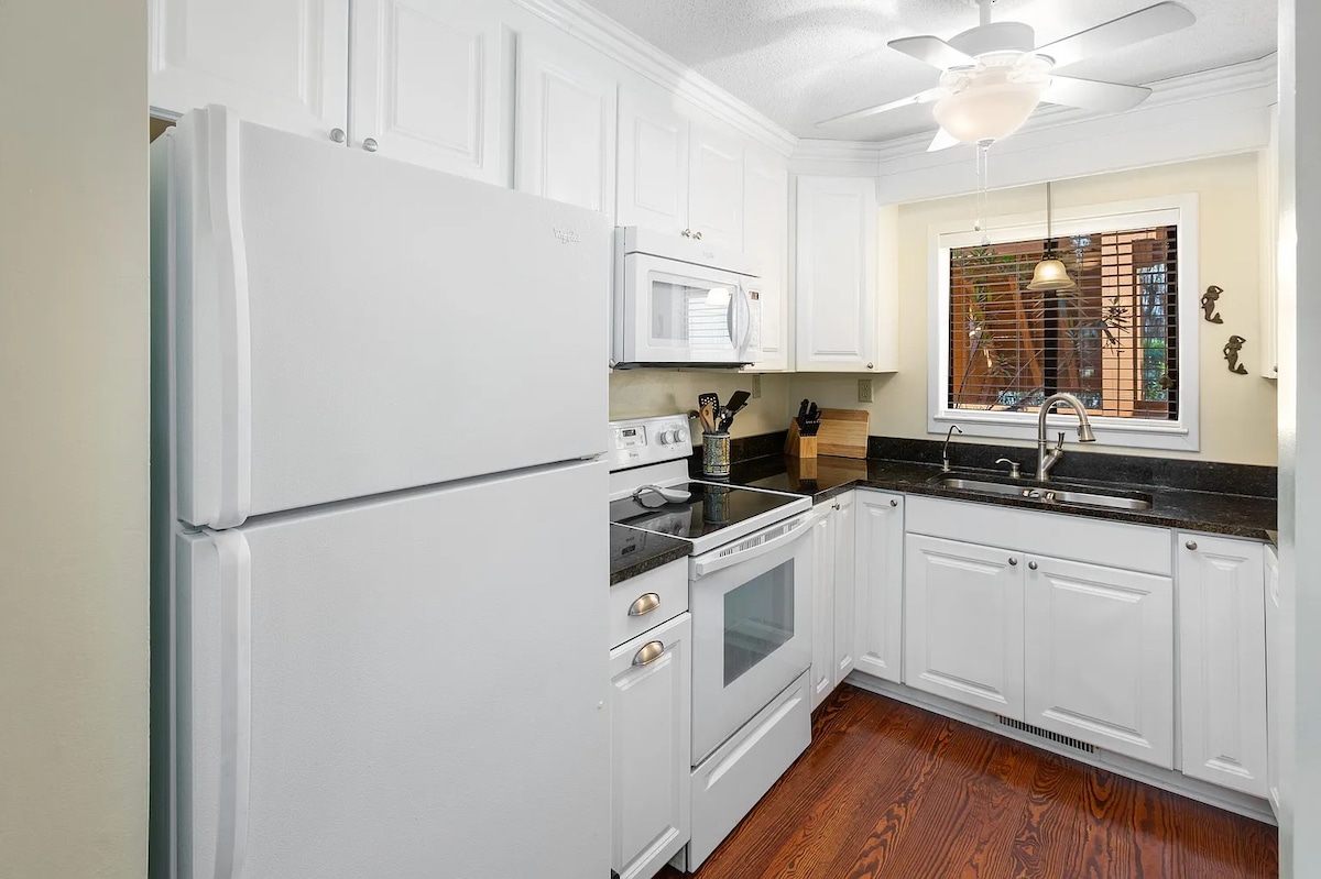 Decorada con buen gusto con la costa en mente, esta eficiencia de 1 dormitorio/1 baño es perfecta para escapar del ajetreo y el bullicio del continente. Ubicada dentro de Ocean Ridge Resort en Edisto Beach, SC, esta villa tiene muchas características para que tu estadía sea relajante y cómoda. Cama tamaño queen, cocina completa ( estufa/horno, nevera, microondas), baño completo, lavadora/secadora, televisión por cable, solárium grande. Las sábanas de cama y de baño se proporcionan así como limpieza de salida para tu comodidad.