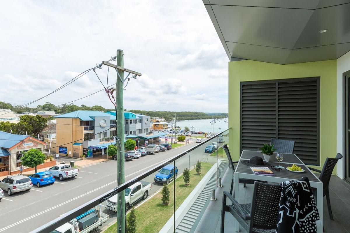 This stylish unit is just off the main shopping strip with views over the harbour and beaches. Relax on the alfresco terrace and watch the passing parade of people enjoying the sea side village of Huskisson. It is equipped with the usual quality inclusions. Underground parking for a small car is available, free on street parking is available. Cafes, restaurants , parks ,shops ,beaches are all within walking distance .Husky picture theatre just up the road is a treat .Strict check in /out time.