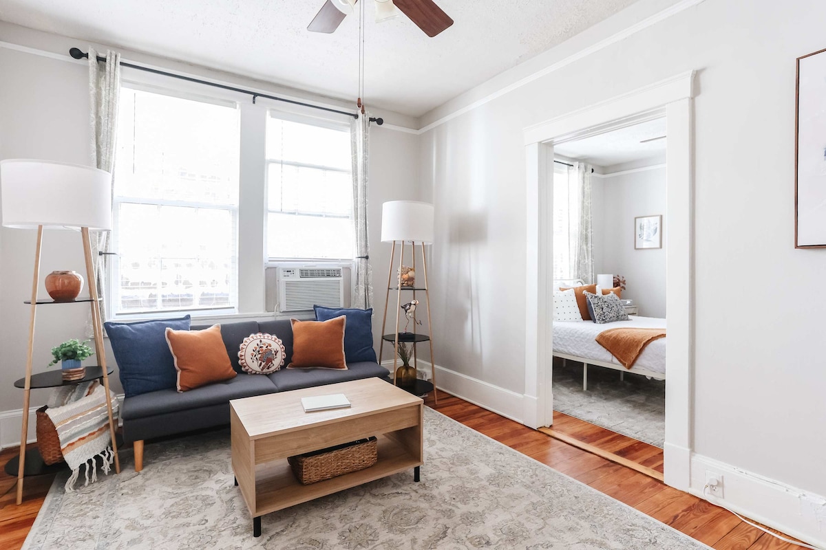 Perfecto para amigos o familias que viajan juntos, este apartamento de 2 dormitorios y 2 baños es una experiencia inigualable en Savannah. El apartamento da a una de las plazas emblemáticas de Savannah y está al lado de la librería vintage más encantadora de la ciudad. Camina fácilmente hasta los restaurantes de Savannah, Forsyth Park y todas las atracciones del centro de la ciudad. Recientemente renovados, disfruta de los baños de mármol equipados con lujosos jabones Aesop, bañera independiente, finas sábanas Matouk y una cocina totalmente equipada.