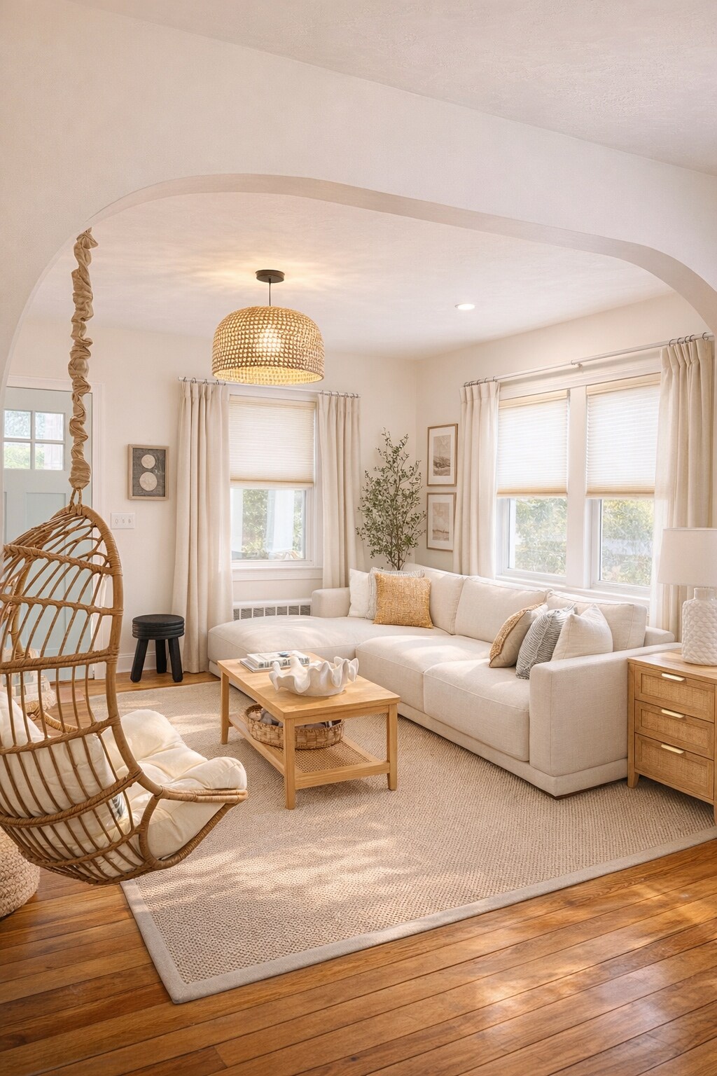 COASTAL DESIGNER 4BR RETREAT -“Salty Sunsets” Upscale designer home with elevated outdoor living. Unique touches throughout like a tranquil basket swing chair in the living room, a fireplace, backyard bohemian basket swings, a fire bowl gathering space and outdoor shower- perfect for slow mornings and golden-hour evenings. Walk or bike to Main St’s restaurants, boutiques and beaches. Minutes from the ferry, airport, and scenic shoreline- the ideal balance of luxury and Cape Cod nostalgia.