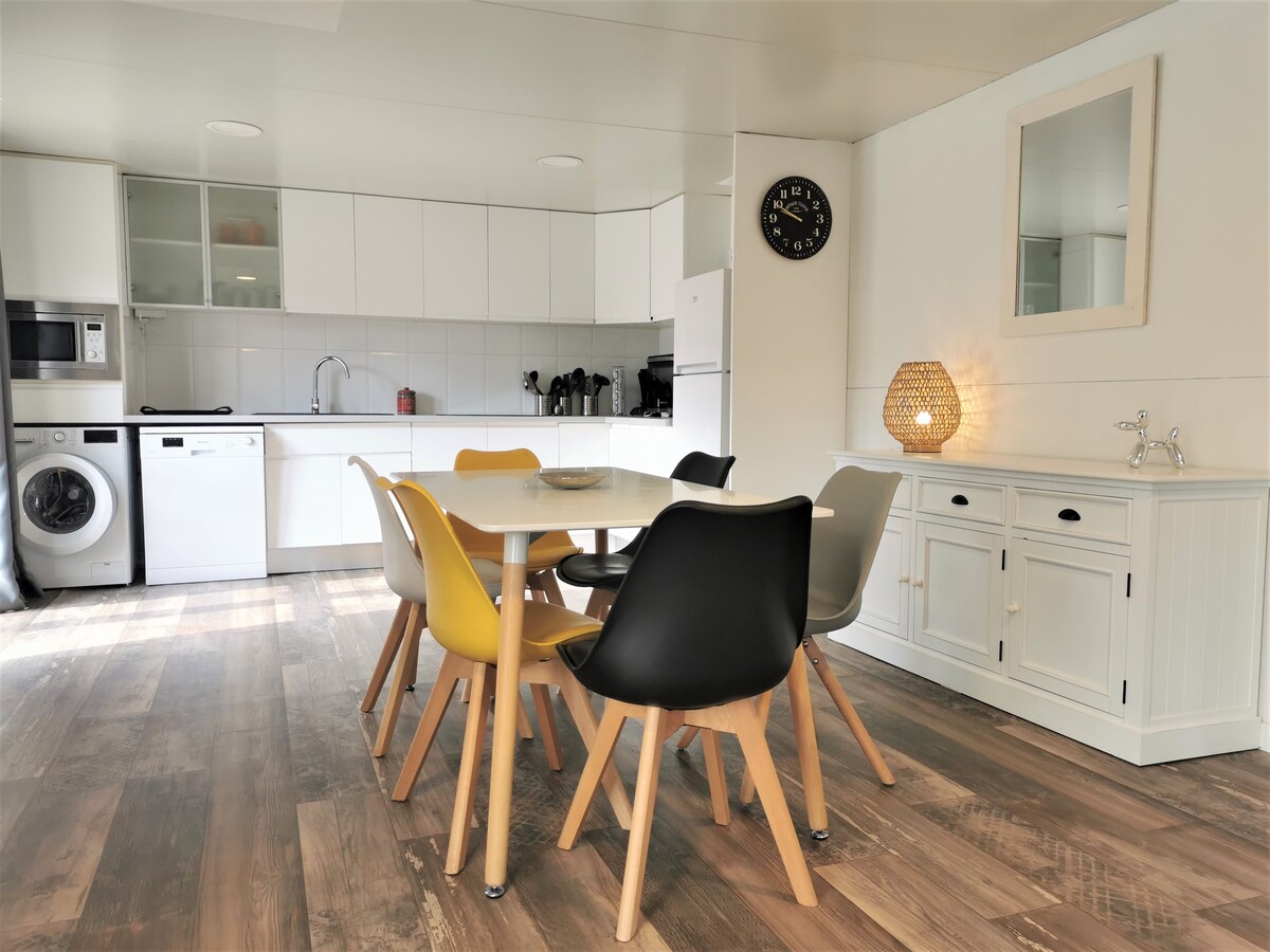 Pas de hausse de tarif pour 2026. Le logement est proche de la mer, des restaurants, des commerces, des plages. Il est neuf et indépendant du logement principal. Son confort: télé ,cuisine ,douche ,climatisation ,wifi (fibre) ,jardin , pergola et barbecue à gaz, piscine partagée et 2 vélos électriques à la location. Il est idéal aussi bien pour un couple , une famille . Le logement est situé prés de la gare SNCF et de la Voie Ferrée
