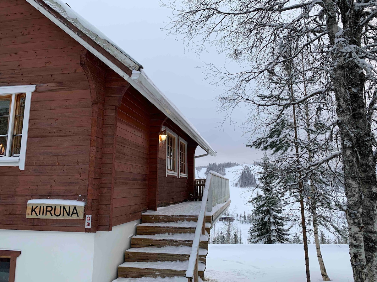 Una casa de campo acogedora y ordenada con dos plantas de alquiler en el Alpine Village de Ukkohalla en un impresionante lugar pintoresco. Big Kiruna es un apartamento de dos pisos en la planta superior de la cabaña con hermosas vistas a las pistas de esquí y a Syväjärvi. Utilizamos la casa de campo por nuestra cuenta con regularidad, por lo que es importante para nosotros que estés tan cómodo como nosotros. La cabaña cuenta con capacidad para 6 personas cómodamente. Pasa unas vacaciones sin preocupaciones: la limpieza final y la leña están incluidas. ¡Se admiten mascotas!