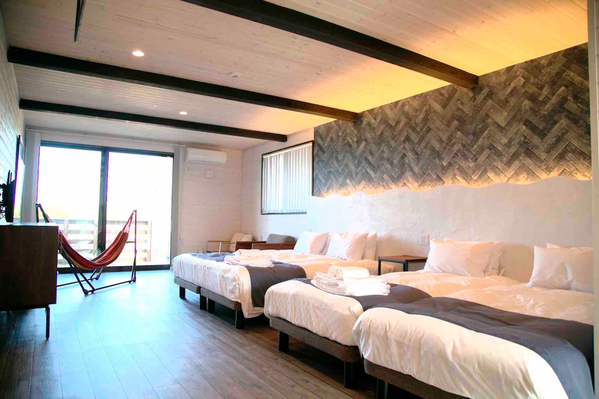 Luxury (lujo) x Surf (surf) x Resort (resort) Es una casa de vacaciones de alquiler (alquiler de villa) que abrió sus puertas como una casa de vacaciones de alquiler (alquiler de villa) con un tema de lujo x surf x resort, limitado a un grupo al día. ¡A 2,3 km de la costa de Tsurigazaki, donde se celebrarán las competiciones de surf en los Juegos Olímpicos de Tokio 2020! Está ubicado a poca distancia en coche. Se encuentra a lo largo de la línea de playa de Kujukuri, y el mar de Kujukuri se extiende desde el bosque de protección contra tormentas que se extiende frente a él. ¡No hay nada que se interponga entre el bosque de protección contra tormentas y el mar, por lo que hay una gran sensación de apertura! Hay una cabaña al aire libre dedicada para guardar temporalmente tablas de surf, trajes de neopreno, aparejos de pesca, etc., dos cuartos de ducha al aire libre, una terraza de madera y césped en el patio del primer piso, un espacio para barbacoas en el balcón del segundo piso y un jacuzzi con vista al mar en la azotea, todos disponibles para uso de los huéspedes. Ofrecemos camas de alta gama fabricadas por Serta, el proveedor número uno en Estados Unidos para hoteles de lujo (nacionales y extranjeros). Podrá aliviar el cansancio de su viaje con un "sueño" de una categoría superior.