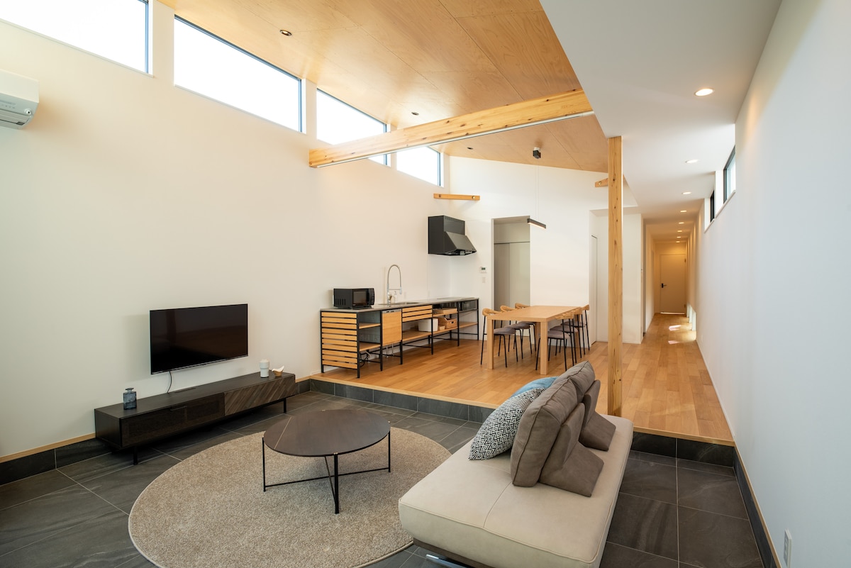 [Shida House Edificio B] Nueva construcción en 2021 80 ㎡ / 2-6 personas / Sala de estar comedor, ventilador de techo parcial / 2 dormitorios (ambos con loft) / 3 plazas de aparcamiento gratuitas / Ducha exterior / Directamente conectado a la entrada, baño y espacio de almacenamiento para tablas de surf y ropa mojada / Amplio jardín de césped natural conectado a la sala de estar y terraza de madera cubierta / Cuenta con parrilla para barbacoa (también proporcionamos carbón y utensilios) / WIFI IPv6 / Lavadora secadora / Lavavajillas automático (Nota: las camas adicionales se configuran mediante un servicio de autoservicio con futones ya incluidos) A 5 minutos a pie de la playa de Shitashita, donde se practica surf en el lugar donde se celebraron los Juegos Olímpicos, se encuentra una casa rodeada de naturaleza con una vista panorámica que abarca desde el puerto de Taigahigashi de Kujukuri, desde el lado del mar en el loft del segundo piso. Disfrute de una barbacoa con vistas al jardín de césped natural de 28 m² y al jardín de hierbas aromáticas desde la terraza de madera de 16 m² con techo, conectada directamente al salón. La sala de estar de 31 m² tiene un techo parcialmente abierto, con ventiladores de techo y techos de madera que crean una sensación de resort, y por la noche puedes disfrutar con amigos y familiares con niños mientras miras el cielo estrellado claro de Kujukuri.