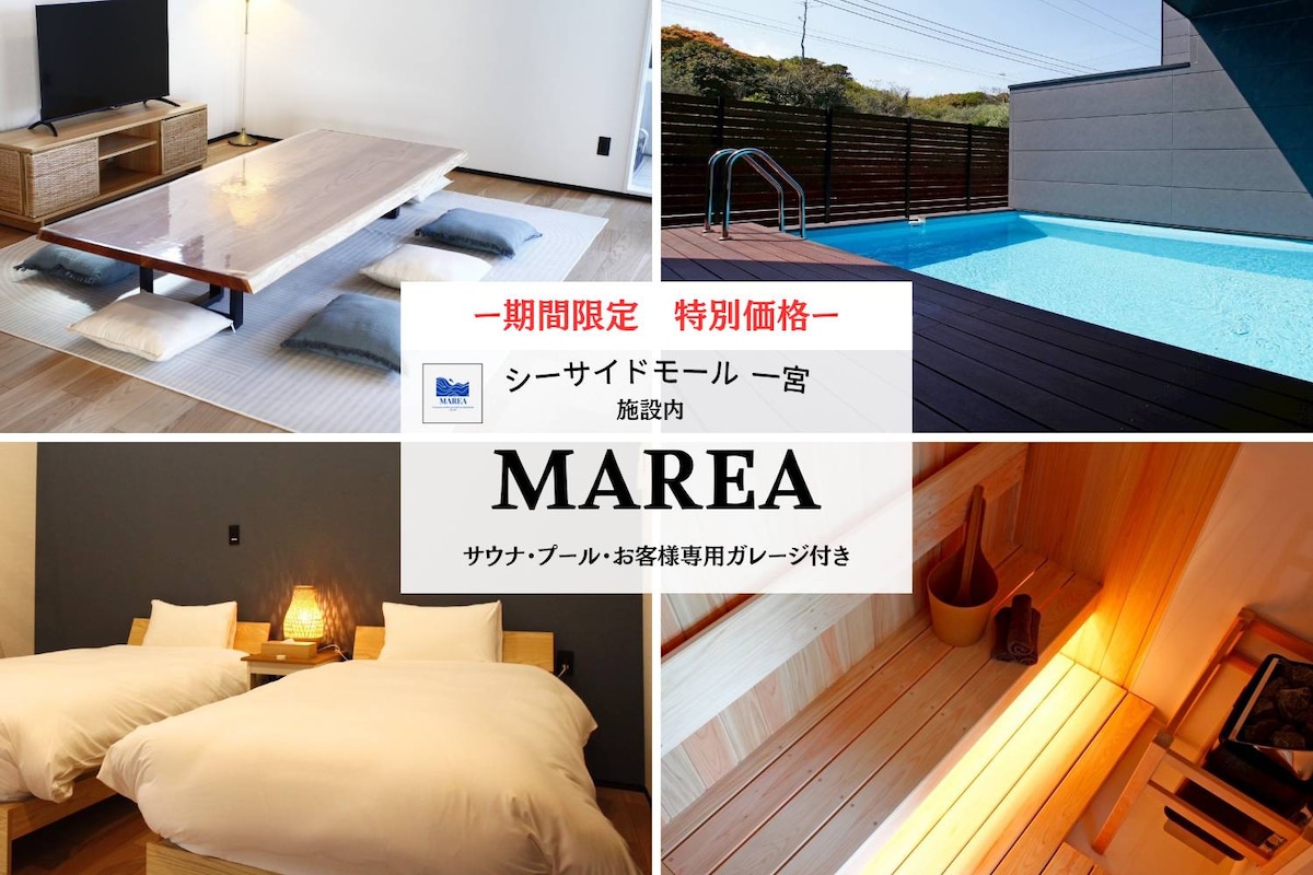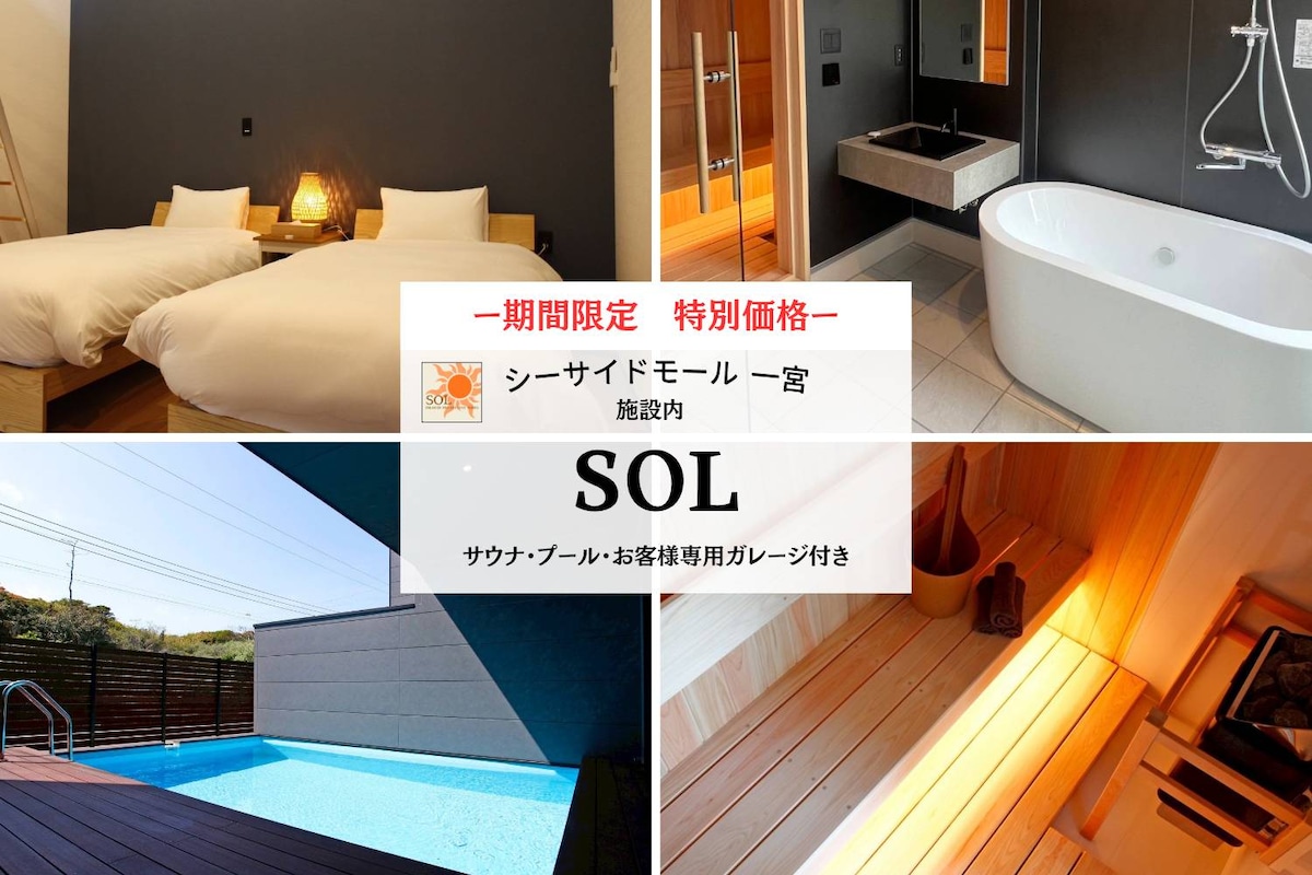 Villa de estilo californiano de nueva construcción con parrilla para asados, piscina, sauna y cocina completa. Instalaciones Y puntos Autorregistro con contraseña 🍖 Juego para barbacoa 🏊♀️ Piscina privada 🧖♀️ Una experiencia de lujo con sauna ☕ Hay una cafetería elegante en las instalaciones 🚗 Estacionamiento disponible y fácil acceso 🌊 A poca distancia a pie de la playa; también hay un lugar para practicar surf cerca 🚿 Equipada con un cabezal de ducha de microburbujas Mirable 🚿 Sistema de agua con purificador de agua (eliminación de cloro) instalado El amplio espacio y el moderno interior le hacen sentir como si se estuviera hospedando en un complejo turístico en el extranjero. Renueve su mente y su cuerpo con instalaciones que se centran en la piscina, la sauna y el agua. Este lugar es perfecto para amigos, familias y grupos. Vengan a visitarnos ✨ * Hay 4 camas individuales. Para las reservaciones de 4 o más huéspedes, se proporcionarán futones. * Se admiten hasta 2 perros 🐶 Se aplica un cargo adicional de 10 000 yenes por estancia. Tenga en cuenta que no permitimos el acceso a las habitaciones.