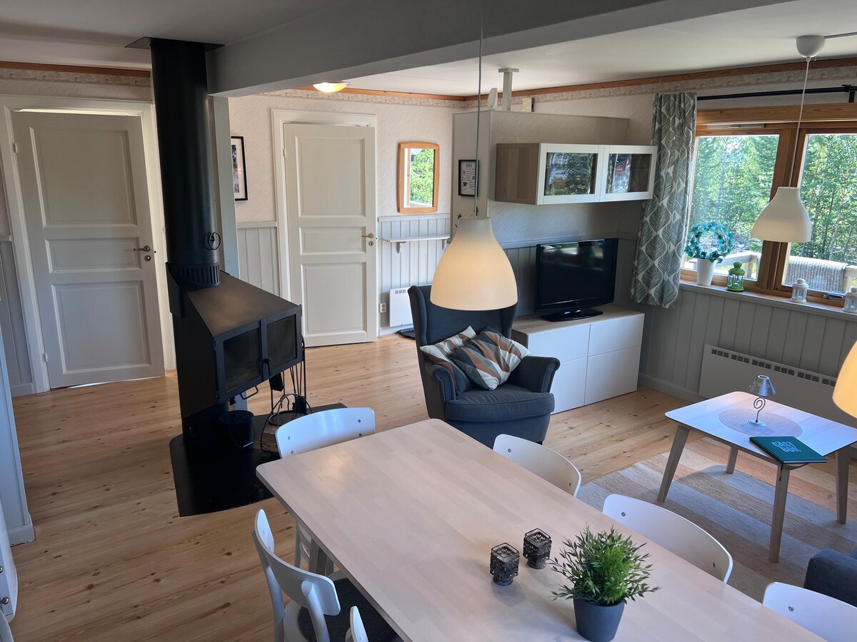 Los grandes ventanales dejan entrar la naturaleza y la luz. Una acogedora mezcla de madera clara, detalles vintage personalizados y toques orientales. Vives cerca de vastas zonas silvestres en Grövelsjön y Foskros, tres estaciones de esquí y pesca con mosca en Storån, así como el vecino Idre Golf. Tienes un bonito bosque detrás de la colina con arándanos y setas, un sendero peatonal arado de 3,5 km y un chapuzón frío en el río a diez minutos a pie. Además de carriles bici. Esperamos que te encante nuestra casa y la naturaleza que ofrecen Idre y los alrededores.