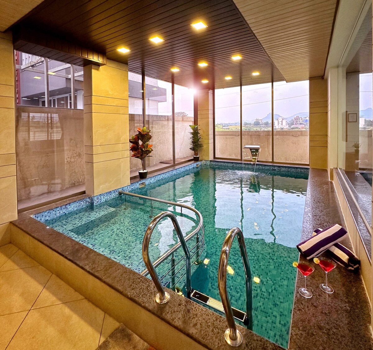 A stylish villa with Semi Indoor Jacuzzi Pool (150 sqft, depth is 2.5 ft) and a huge deck. Tulip villa is a 3000 sq ft villa surrounded with beautiful landscaping in 0.5 acre land providing an experience of serene nature. This villa is located Grape County Eco Resort, at a walkable distance to GC Resort Restaurant and Resort Lake. The villa is built with standards and amenities meeting premium hospitality. Distance by car from: - Trimbakeshwar Mandir: 15 mins - Sula Vineyard: 22 mins