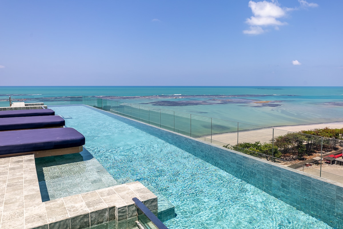 Villa de lujo Apartamento con balcón frente al mar de Pajuçara, panorámico, impresionante, impresionantes vistas a las piscinas naturales. Suite Most High Standard, elegante, cómoda y exclusiva. Arquitectura atrevida para el máximo confort. Edificio nuevo y moderno, recepción 24 horas, piscina y azotea con vistas panorámicas, sauna, hidromasaje, gimnasio, sala de juegos, sala de juegos y aparcamiento privado. En la mejor ubicación junto al mar, en la urbanización más sofisticada e innovadora de Maceió.