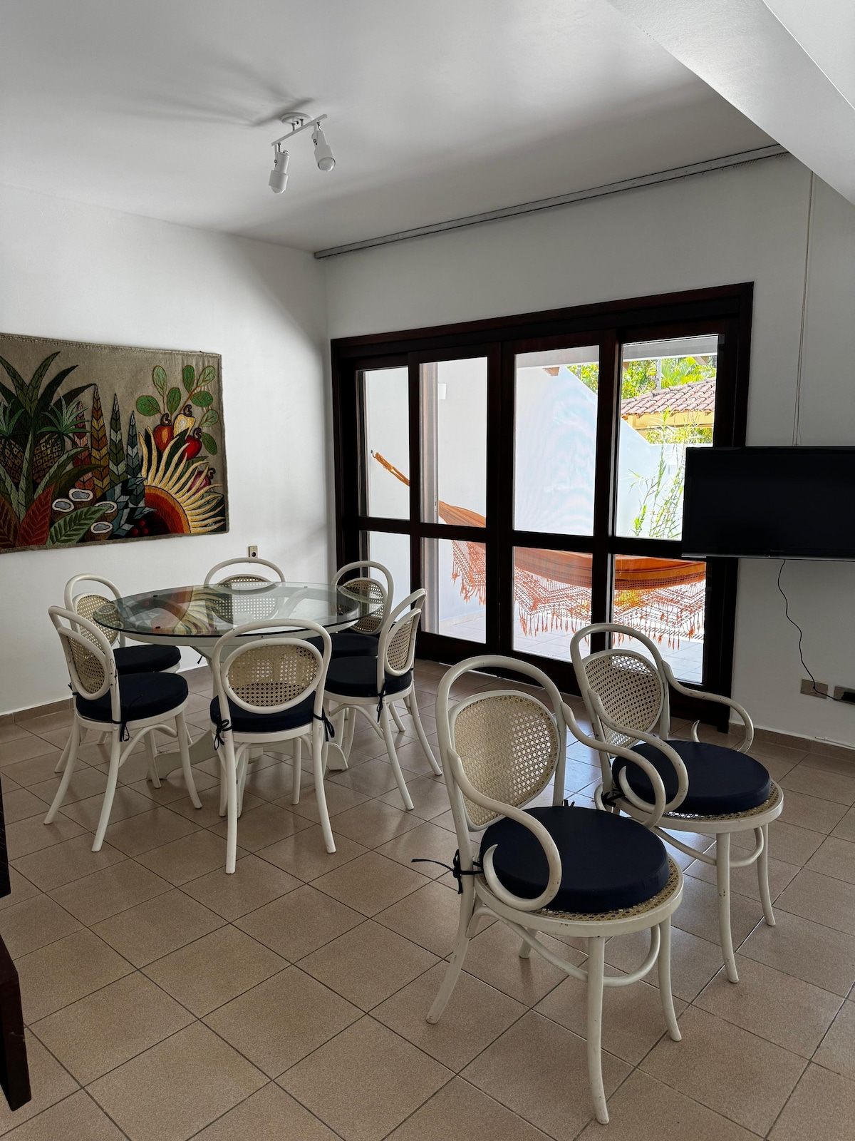 Casa n. 06 en condominio cerrado, frente al mar, en la mejor zona de Balneário Atami, 1 garaje privado cubierto y 1 descubierto. Piscina, espejo de agua y jacuzzi. Barbacoa, wifi, Smart TV, 1 suite matrimonial con cama queen y otros 2 dormitorios matrimoniales, dos de ellos con balcón frente al mar, todos con aire acondicionado. Sala con aire acondicionado. Totalmente ventilado y soleado por la mañana y por la tarde. Perfecto para familias.