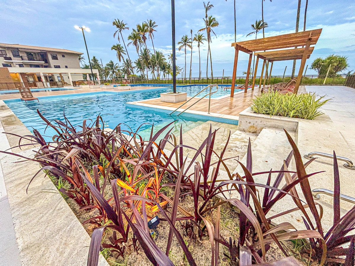 Frente a una hermosa playa. Condominio a pie de arena y con acceso a la playa. - Piscinas combinadas con terraza. - Playa con puesto de helados a 5 minutos a pie. - Apartamento con aire acondicionado en la suite, en el dormitorio y en la sala de estar. - Todos los muebles y acabados son finos y de primera calidad. - Apartamento con vista al mar. Venga a disfrutar de este paraíso de condominio. PD: Se permite un máximo de 6 huéspedes adultos. Ubicación: Después de los Resorts Tororomba y Canabrava.