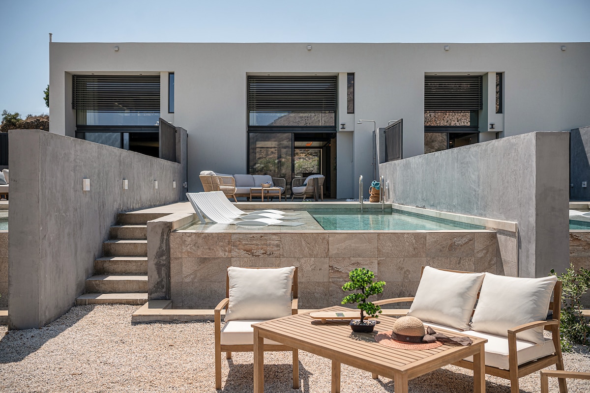 Un complejo de piedra totalmente renovado construido sobre tres antiguas grutas griegas. Antes era una fábrica veneciana de prensado de aceitunas. Ahora es una casa de vacaciones contemporánea con dos piscinas (interior y exterior) y un huerto orgánico de verduras y frutas locales.